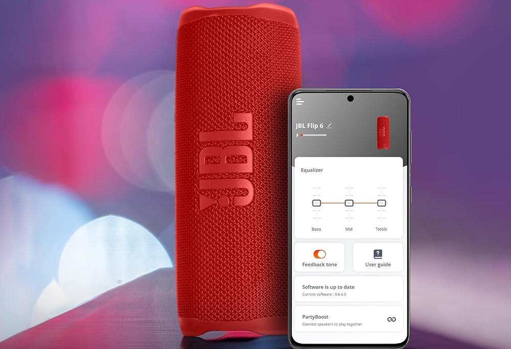 - Aplikacja JBL Portable pozwala na personalizację dźwięku, aktualizacje oprogramowania i inne funkcje.
