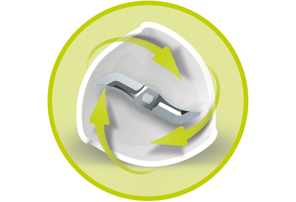 - Jego ergonomiczny design oraz ochrona ostrza przed rozpryskami skutecznie redukują bałagan.