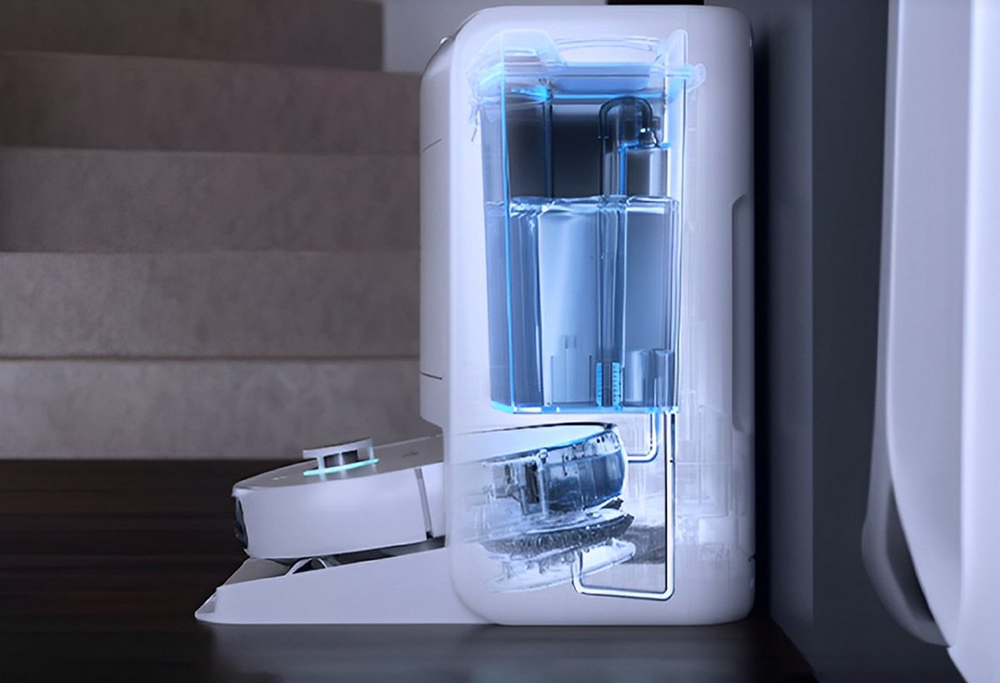 - Stacja bazowa z funkcją automatycznego czyszczenia, płukania i suszenia mopa oraz technologią zapobiegającą plątaniu, skutecznie usuwającą włosy i sierść zwierząt.